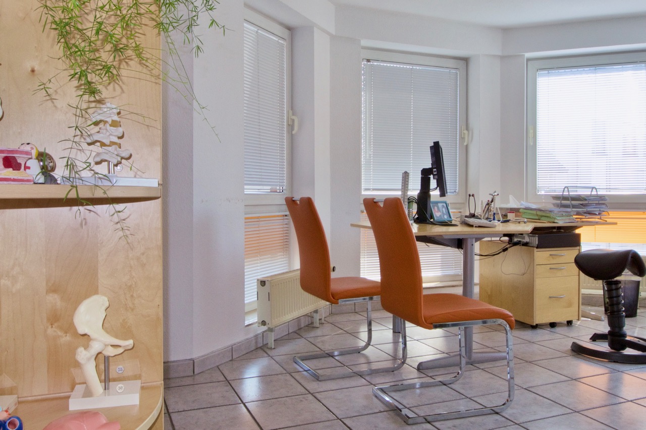 Die Praxisräume sind sämtlich für Rollstuhlfahrer zugänglich, mit Ausnahme des WC .